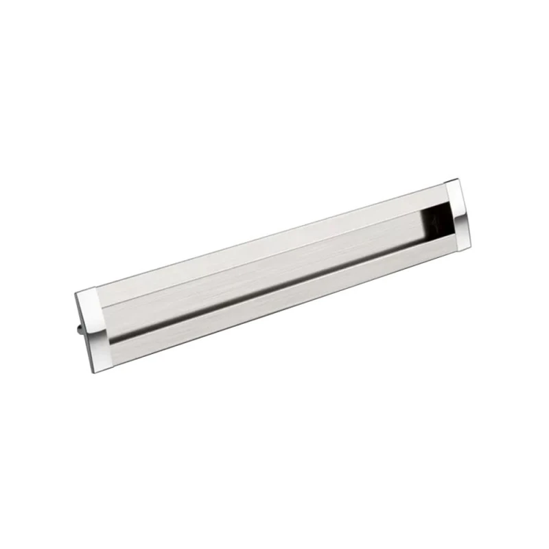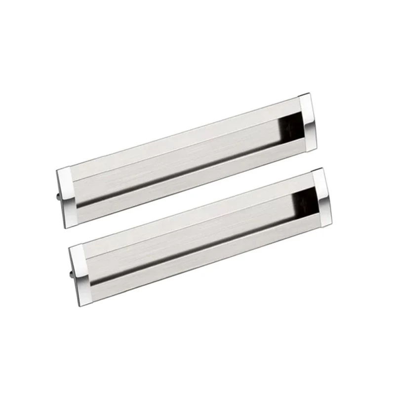 Projetos especiais necessitam de puxadores diferenciados. Modelo produzido com perfil de alumínio embutido no painel com ponteiras de zamak.