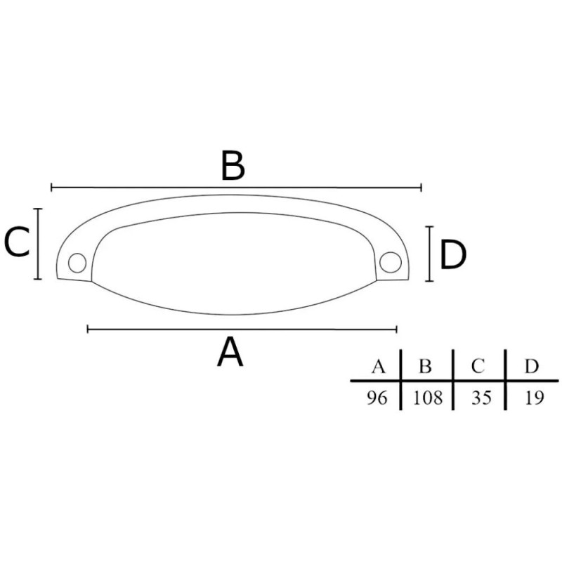 Puxador para Móveis no estilo concha e distância entre furos de 96mm. Excelente opção para móveis novos, restaurados, com estilo provençal ou produzidos com madeira de demolição.