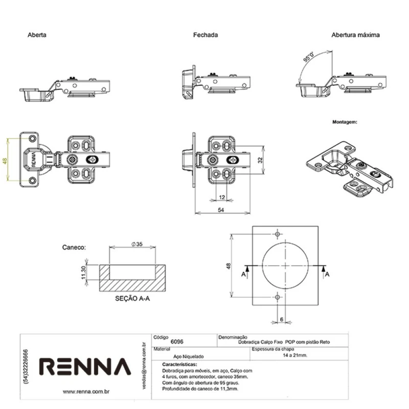 DOBRADIÇA CANECO CALÇO FIXO RENNA POP AMORTECEDOR RETA