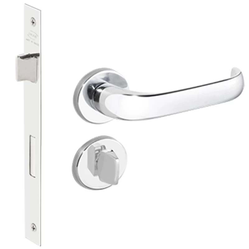 CONJUNTO DE FECHADURA DA LINHA BASIC DO MODELO DUNA MA0987, MATERIAL EM ZAMAK NO ACABAMENTO CROMADO - CR, COMPOSTO DE ROSETA - 0069 EM AÇO INOX, FECHADURA 1300 BANHEIRO, COM DISTÂNCIA BROCA 40 MM TIPO I ,CLASSIFICADO CONFORME NORMA ABNT NBR 14913: 2 - TRÁFEGO MÉDIO, 1 - SEGURANÇA MÍNIMA, 3 - COM UMIDADES E INTEMPÉRIES.