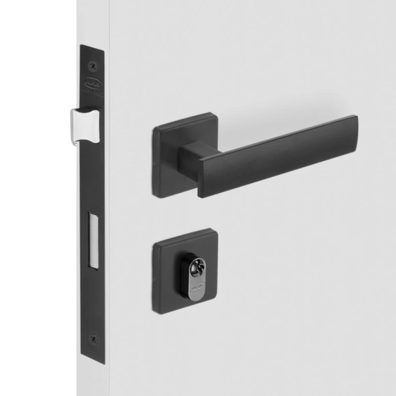 CONJUNTO DE FECHADURA DA LINHA BASIC DO MODELO METRO LIGHT MA0960, MATERIAL EM ZAMAK NO ACABAMENTO PINTADO PRETO - PP, COMPOSTO DE ROSETA - 0081 EM LATAO , FECHADURA 1750 INTERNA COM DISTÂNCIA BROCA 55 MM TIPO II ,CLASSIFICADO CONFORME NORMA ABNT NBR 14913: 2- TRÁFEGO MÉDIO, 2- SEGURANÇA MÉDIA, 2- COM UMIDADES, SEM INTEMPÉRIES.