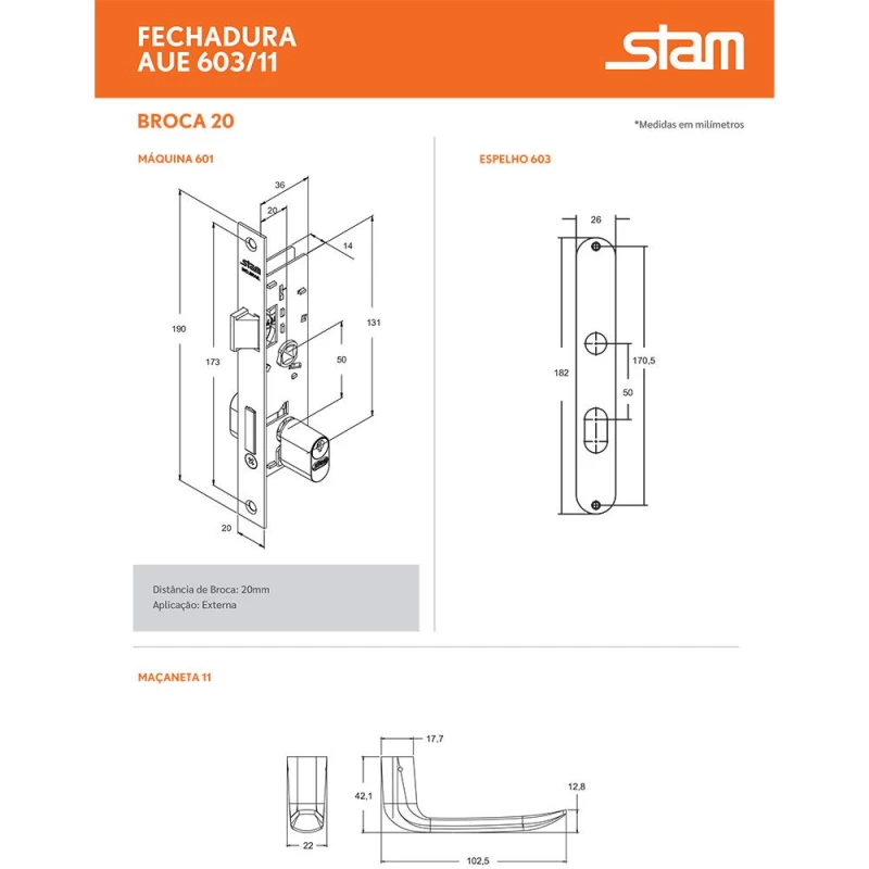 A fechadura Aue 603 da Stam otimiza o trabalho do serralheiro com instalação prática e variedade de modelos e acabamentos.