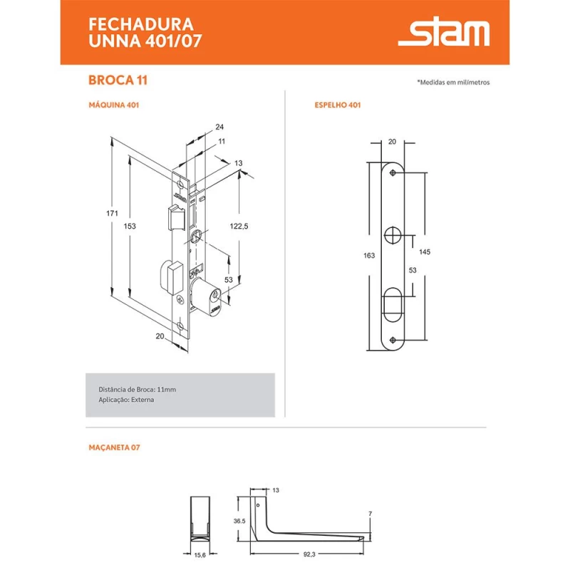 A fechadura Unna 401 da Stam é a melhor na linha serralheiro, para o perfil mais estreito do mercado.