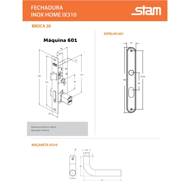 Composição: Aço ABNT 1010, Zamac, Aço Inox, Latão, Plástico de Engenharia