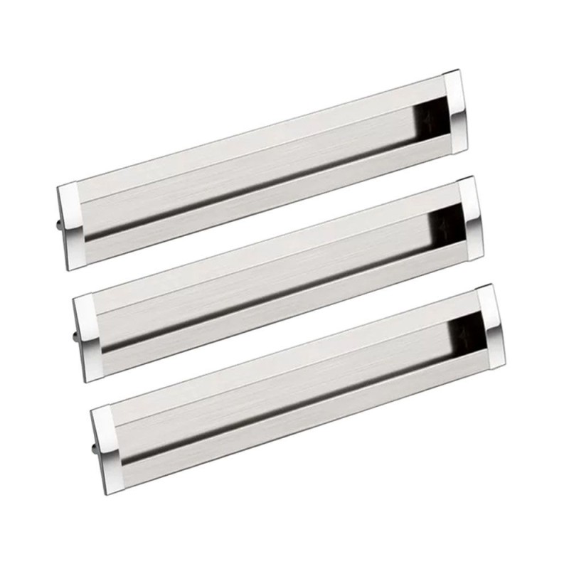 Projetos especiais necessitam de puxadores diferenciados. Modelo produzido com perfil de alumínio embutido no painel com ponteiras de zamak.