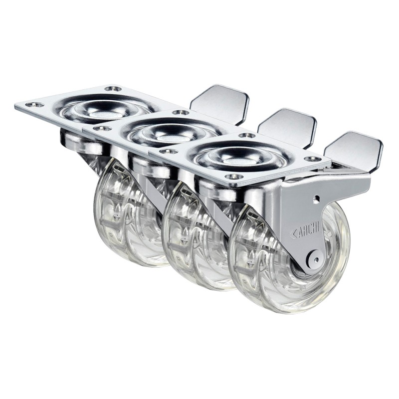 A Linha Cromo Gel com rolamento é produzida com materiais de alto padrão de qualidade. Seu design moderno e funcional evita riscos e ranhuras no piso. Injetado em poliuretano, eixos com rolamentos, perfil paralelo maior resistência e vida útil. Mais suavidade e agilidade nos movimentos. A versão com freio tem um sistema exclusivo de duplo acionamento que trava tanto a roda quanto o corpo, impedindo o giro do rodízio no seu próprio eixo.