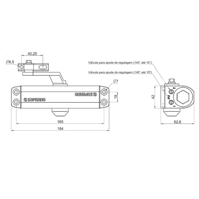 - Um diferencial desse produto que só a Soprano tem é o braço reforçado e com dupla regulagem por rosca que permite o ajuste da mola aérea sem a necessidade de remover o produto do local de instalação.
