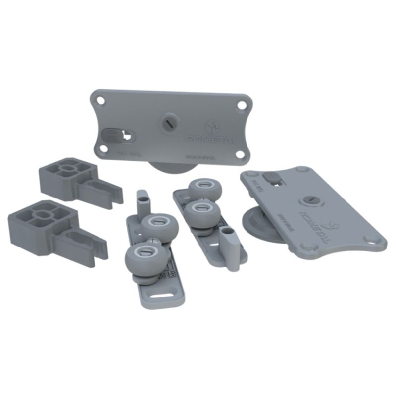 O sistema deslizante RO-47, com guia 4030, da Rometal é destinado para portas de MDF/MDP ou de alumínio, com capacidade de carga de até 60kg e espessura da porta de 15 a 25mm. Sistema com regulagem diferenciada, muito mais fácil e prática. Corpo mais robusto, sistema Embutido com sustentação na Base e molas de antidescarrilamento, para uma maior segurança.