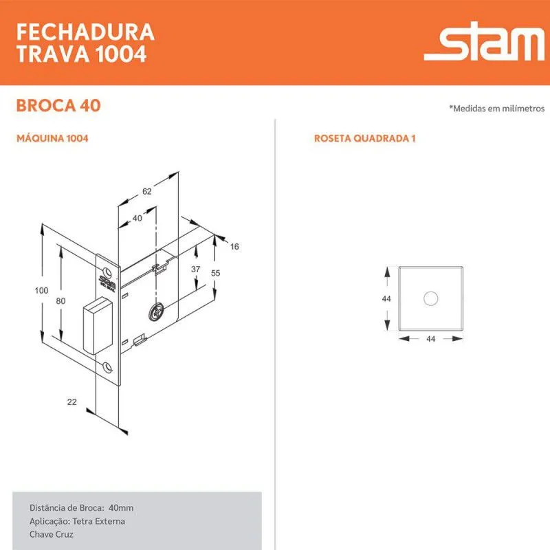 As travas auxiliares da Stam fornecem mais proteção para seu imóvel. Isso tudo combinando com com as principais fechaduras Stam. A trava de segurança 1004 com chave longa é idela para portas com mais espessura.